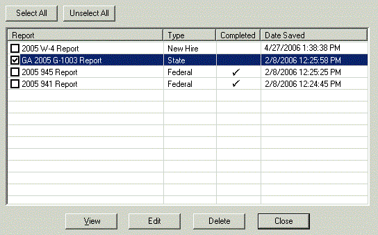 You can choose to view, print, or delete any or all of the forms listed in this window (cannot print on dot-matrix printers).